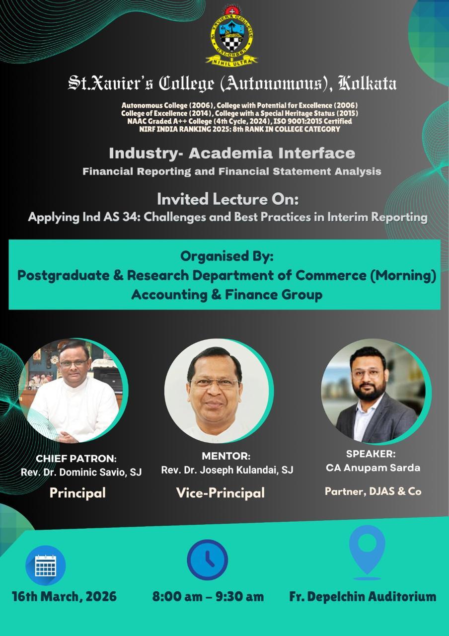 A Christian Minority Higher Educational Institution, St. Xavier's was founded in 1860 by a Catholic Minority Religious Body, the Society of Jesus, and was affiliated to the University of Calcutta in 1862. While preference is shown to the educational and cultural needs of the Christian Minority community and the poor i.e. socially and financially marginalized, admission is open to all irrespective of caste, creed and nationality. With a long and rewarding history of achievement of the Jesuits in education, our College community continues to move forward together with confidence, pride and enthusiasm. This institution was created with the objective of providing 360 degree quality education which will enable students not only to thrive in academics but also motivate them towards character building, leadership, extra and co-curricular activities. A very strong, dedicated and capable team of educators has always been the driving force in the growth of the College.
