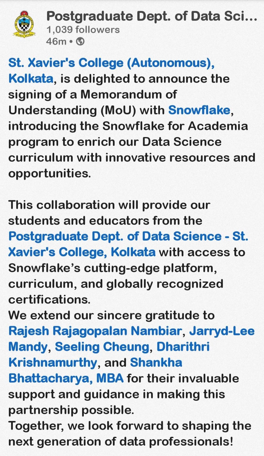 With one hundred and sixty three years of service to the nation, St. Xavier's College, Kolkata, has grown today into a leading educational institution in India. Both St. Xavier's School and College are proud of their contribution to the cause of education and culture in Bengal for 165 years. These twin institutions have produced many great educationists and students who earned regard and respect for their Alma Mater.