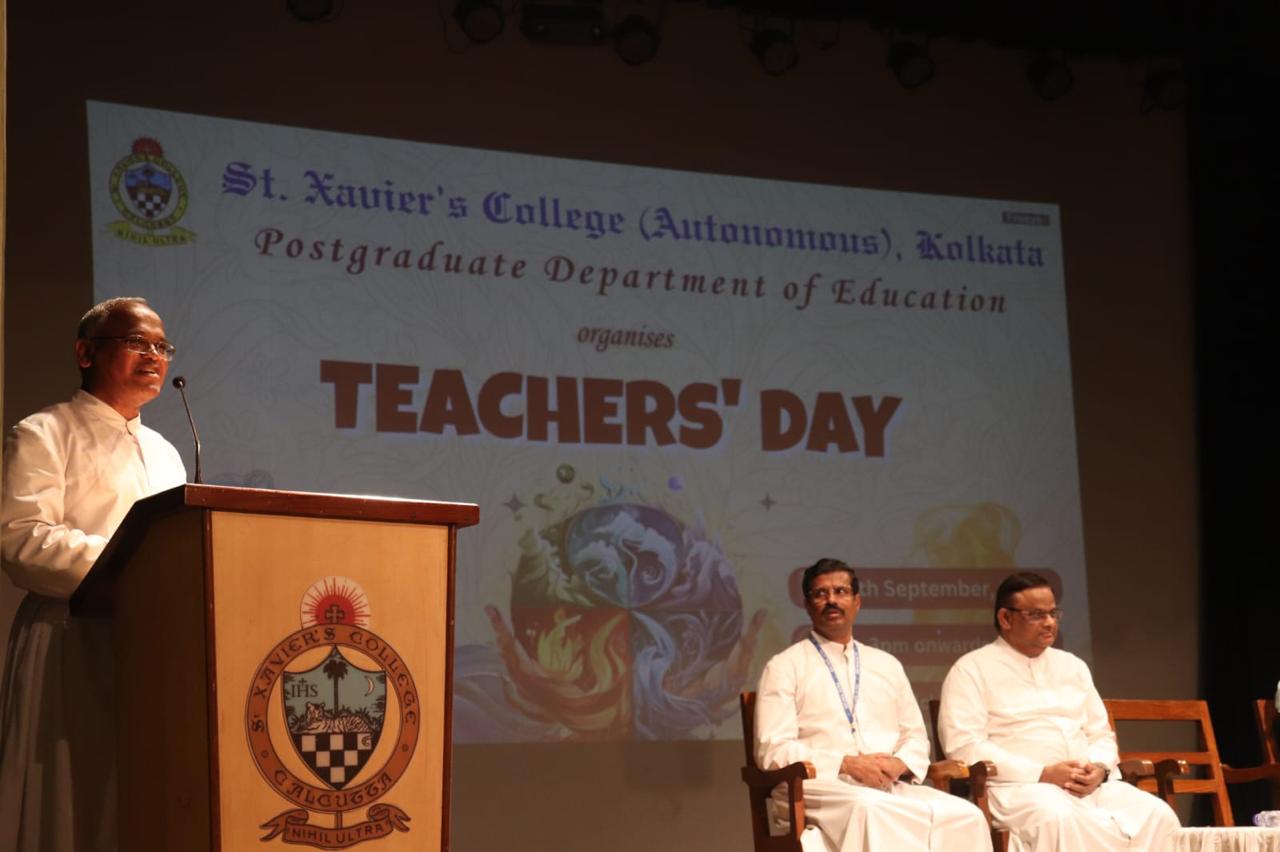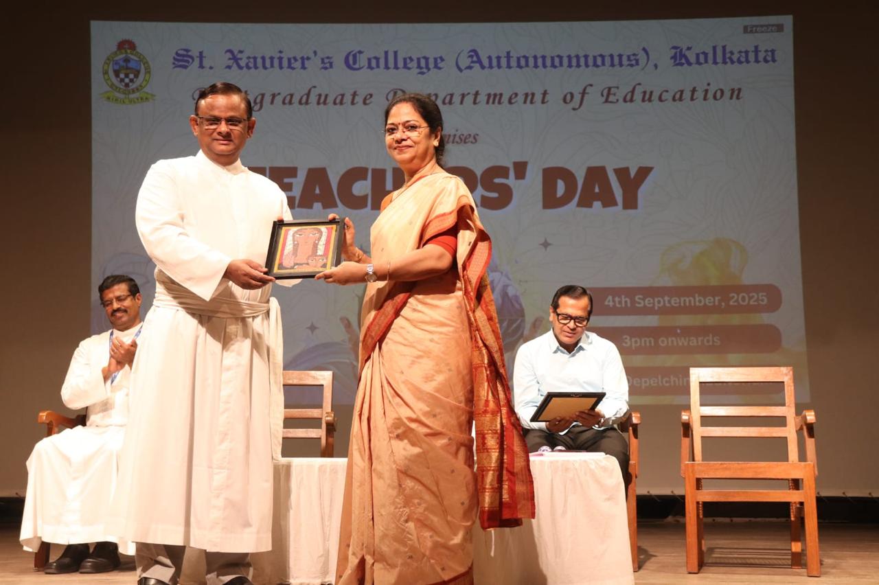 The Postgraduate Department of Education celebrated Teachers’ Day on 4th September 2025 with great enthusiasm. The occasion was graced by Fr. Rector, Rev. Jeyraj Veluswamy SJ, Fr. Principal, Dr. Dominic Savio SJ and the Vice-Principal, Dr. Swati Sarkar, who addressed the students and faculty with inspiring words.