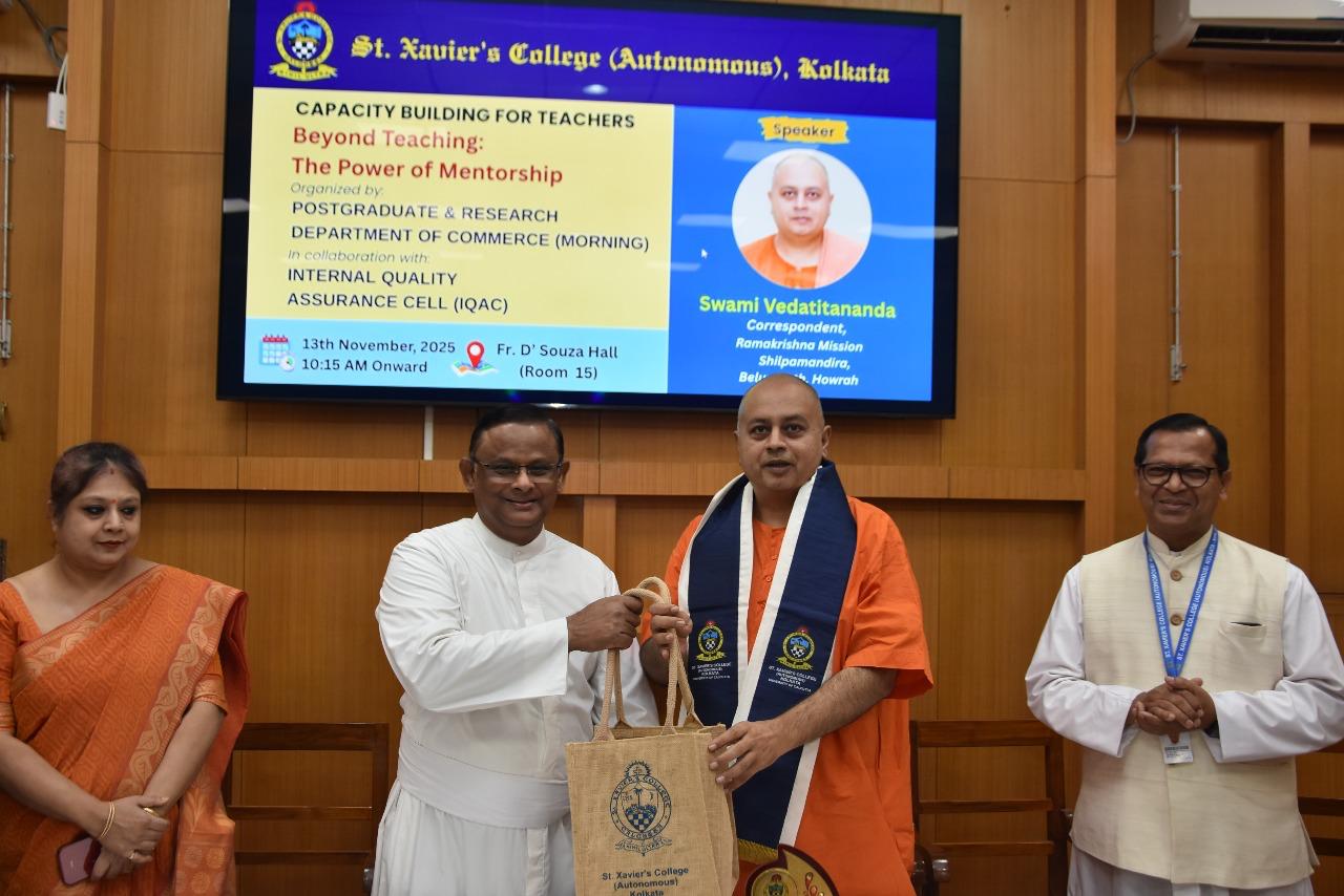Rev. Fr. Dr. Dominic Savio, SJ, Principal, St. Xavier's College (Autonomous) Kolkata, presided over the inaugural ceremeny of a seminar on Bengali Literature, Theatre and Cinema: Relationship, held at the college on 25 August 2025. It was organised by the Bengali Dept and the IQAC Cell of the College in collaboration with Sahitya Academy, Govt. of India. Education Minister of West Bengal and eminent writer, dramatist, actor and film director, Bratya Basu, was present on the occasion as the Chief Guest. Rector Rev. Fr. Jeyaraj Veluswamy, SJ, was also present.