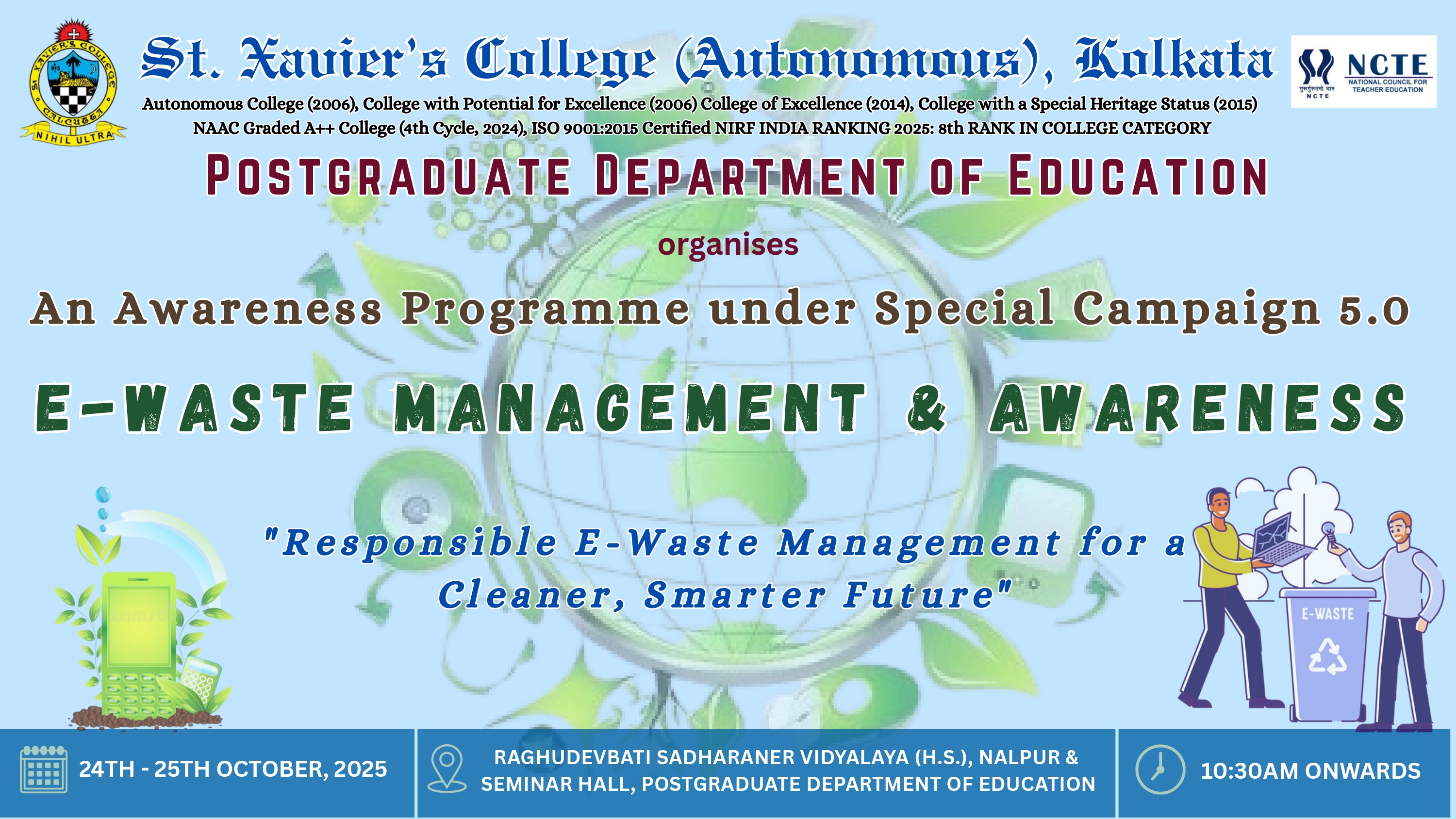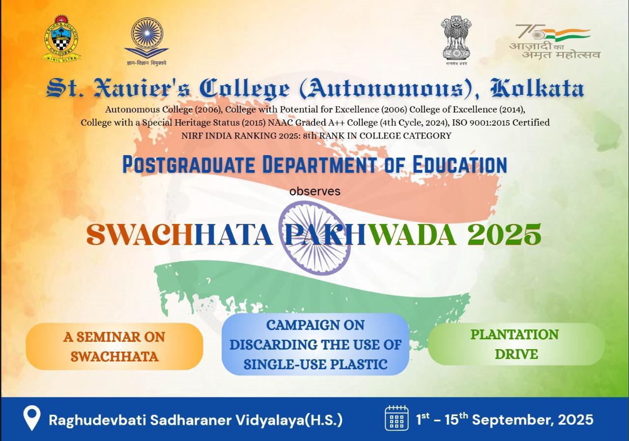 The Postgraduate Department of Education observed Swachhata Pakhwada 2025 from 1st to 15th September through an Awareness Programme followed by a plantation drive at Raghudevbati Sadharaner Vidyalaya (H.S.). The activities reflected the spirit of Swachhata through action, advocacy, and environmental commitment.