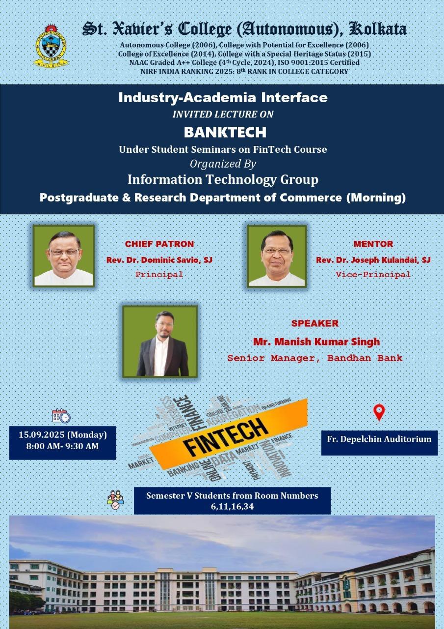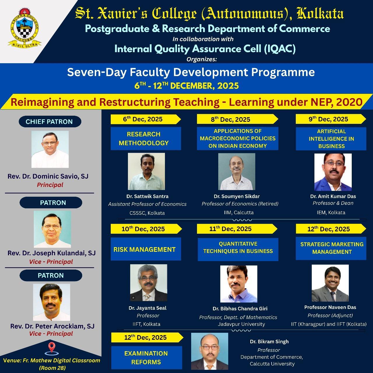 The Postgraduate and Research Department of Bengali organized a seminar on 'Father Robert Antoine, SJ: Byakti O Srishti' on September 6, 2025, at the Raghabpur Campus, to honour the Jesuit priest and Comparative Literature professor at Jadavpur University. Father Antoine (1914-1981) was a renowned scholar, translator, composer, teacher, and critic of classical literature. The seminar featured lectures by esteemed speakers, including some of Father Antoine's students and colleagues.