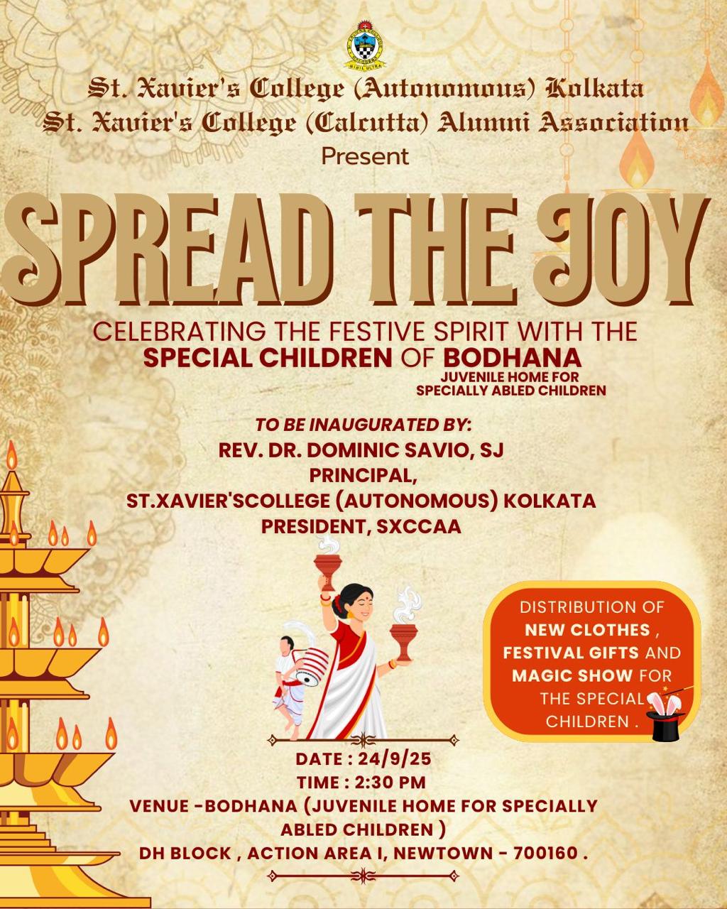 The St. Xavier’s College (Calcutta) Alumni Association (SXCCAA) organized a heartwarming outreach programme, “Spread the Joy”, on Wednesday, 24th September 2025, at Bodhana, a home for specially abled children in Newtown, Kolkata.