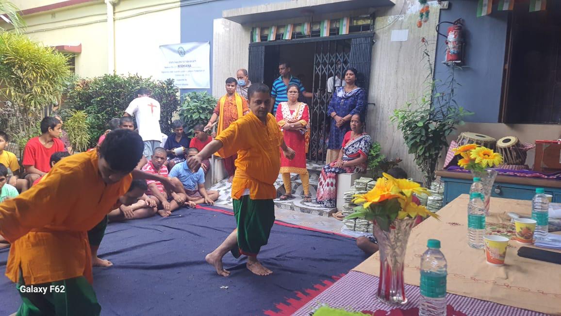 To celebrate the festive spirit of Durga Puja, new clothes, gifts, and accessories were distributed among the children. A special festive lunch was also arranged, complemented by lively performances including a magic show and a talking doll act, which brought smiles and laughter to the children. Fr. Dominic Savio further encouraged them by visiting the handicrafts section, appreciating their talent and resilience.