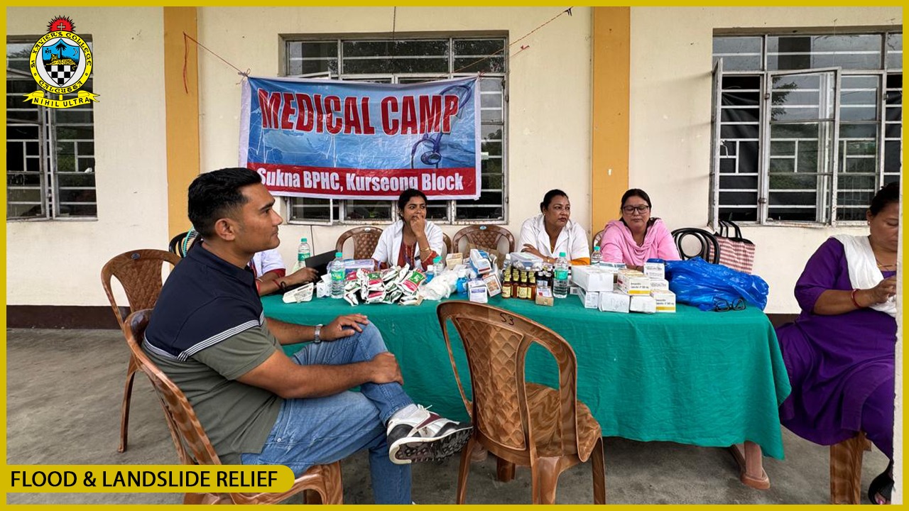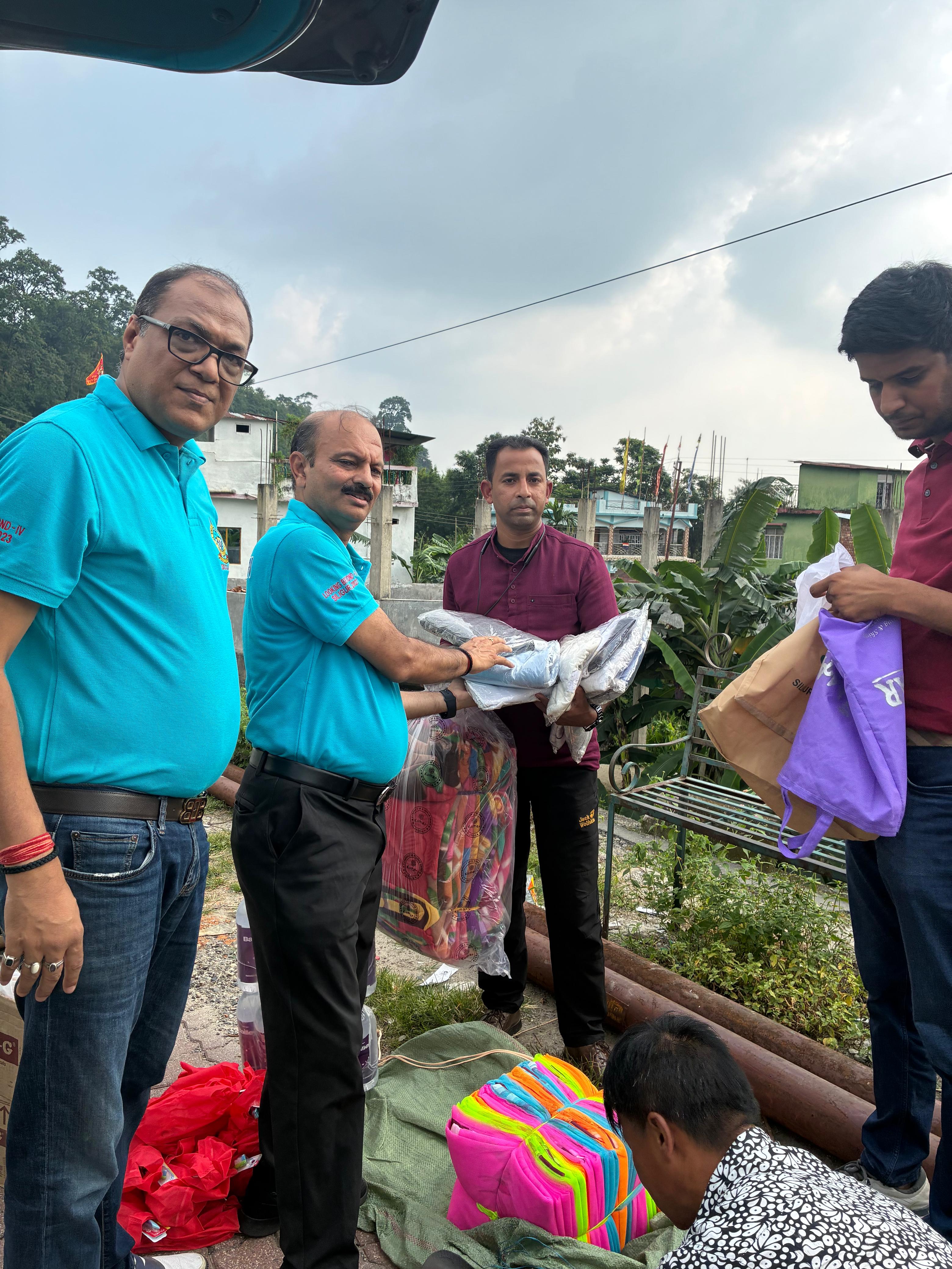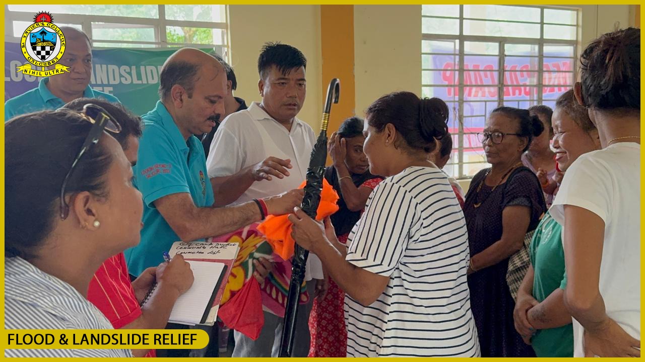 Essential relief materials — including food items, medicines, clothing, umbrellas, blankets, tarpaulins and hygiene kits — were distributed at the Dudhey relief camp, with additional supplies reaching families from a remote village near Mirik, where connectivity remains disrupted. The Chapter also plans to extend relief efforts to the Sukiapokri belt in the coming days.