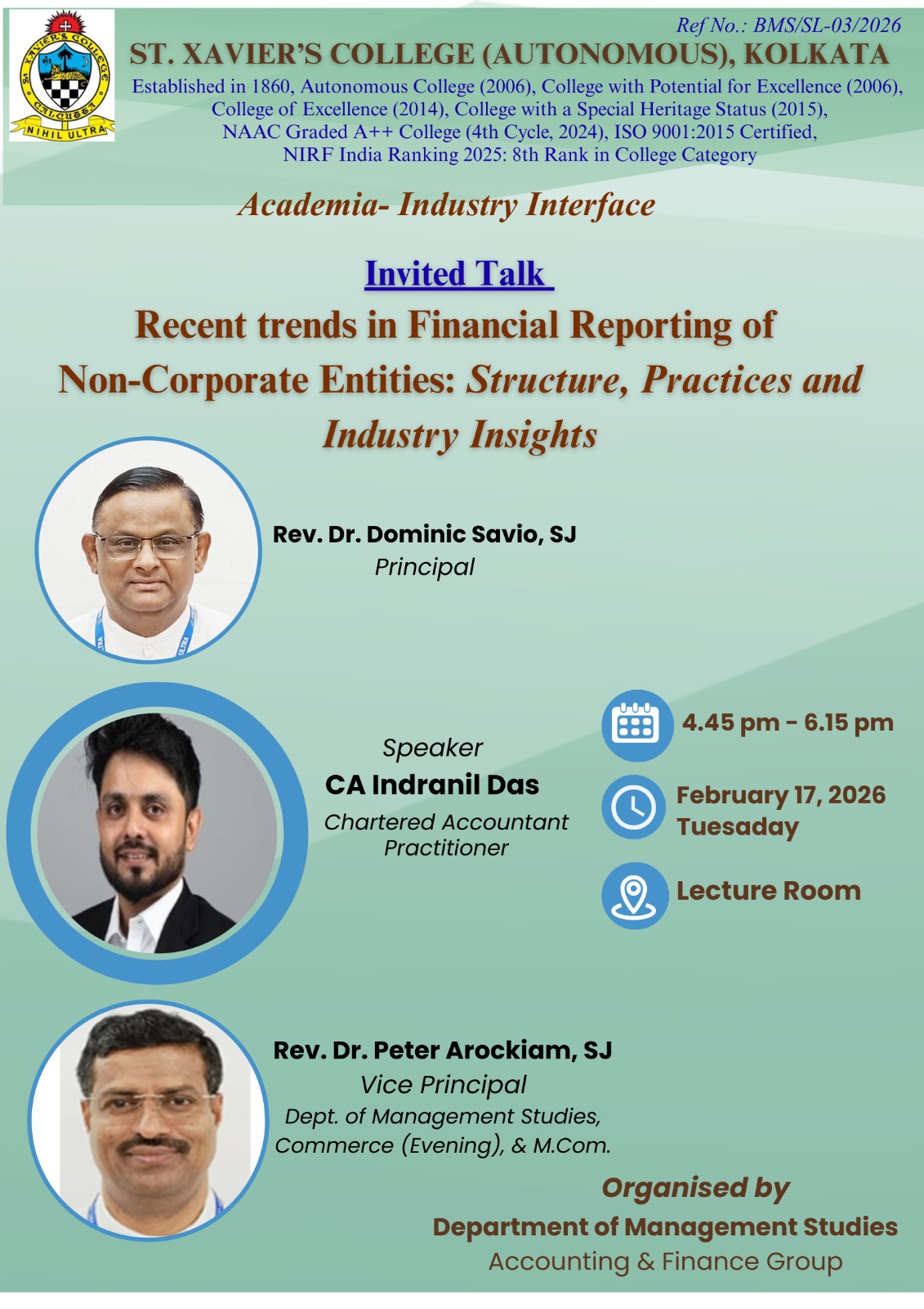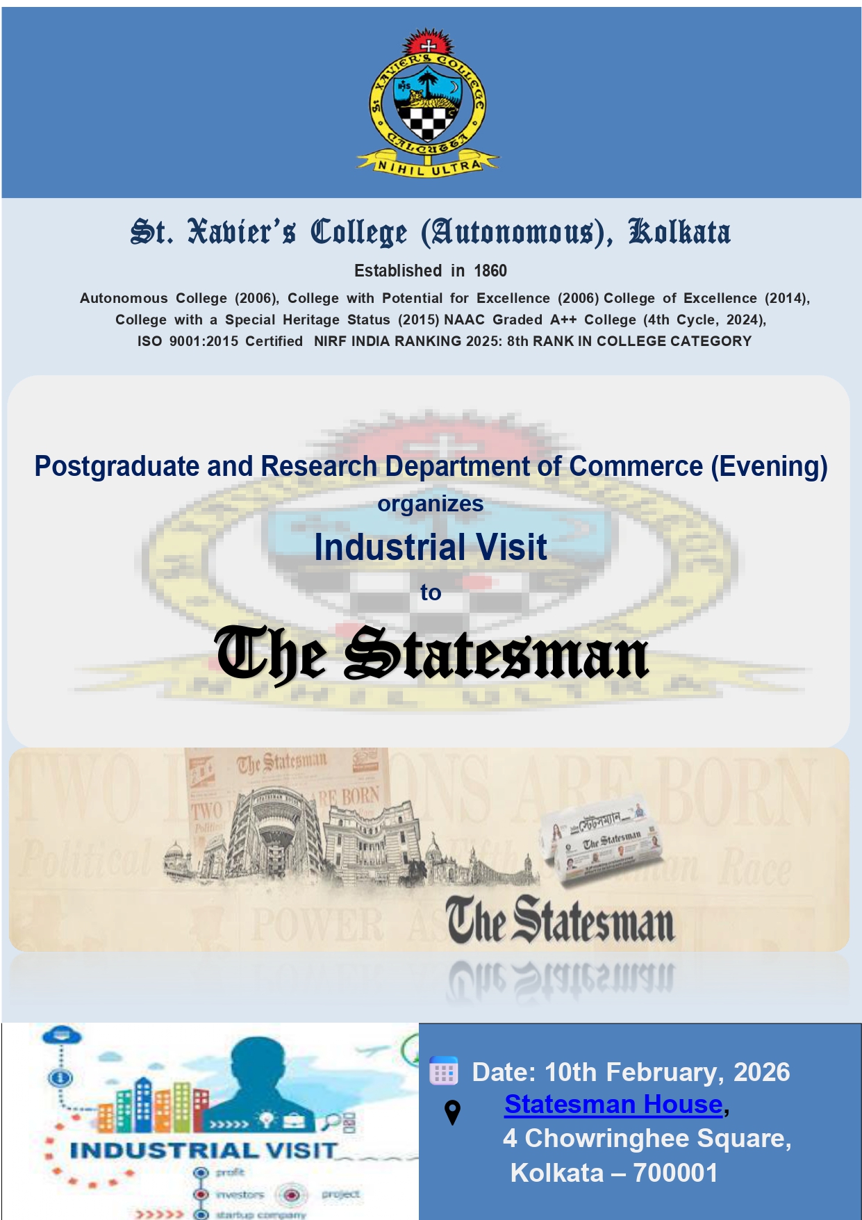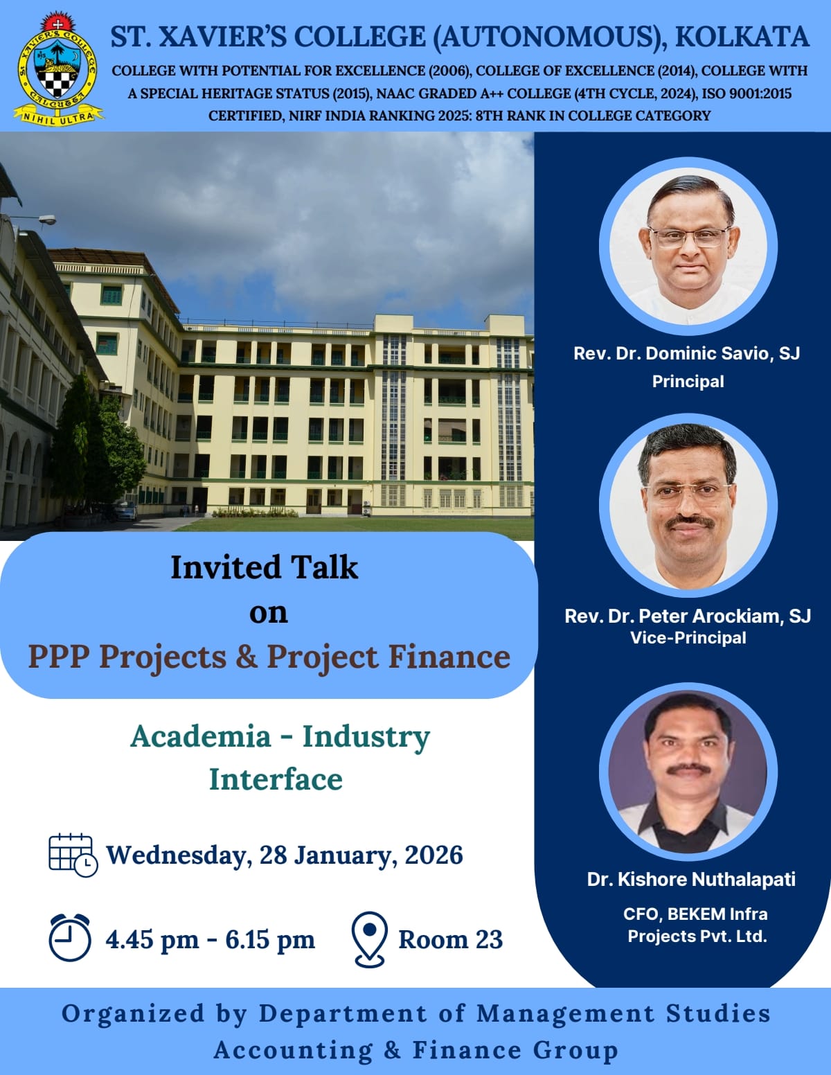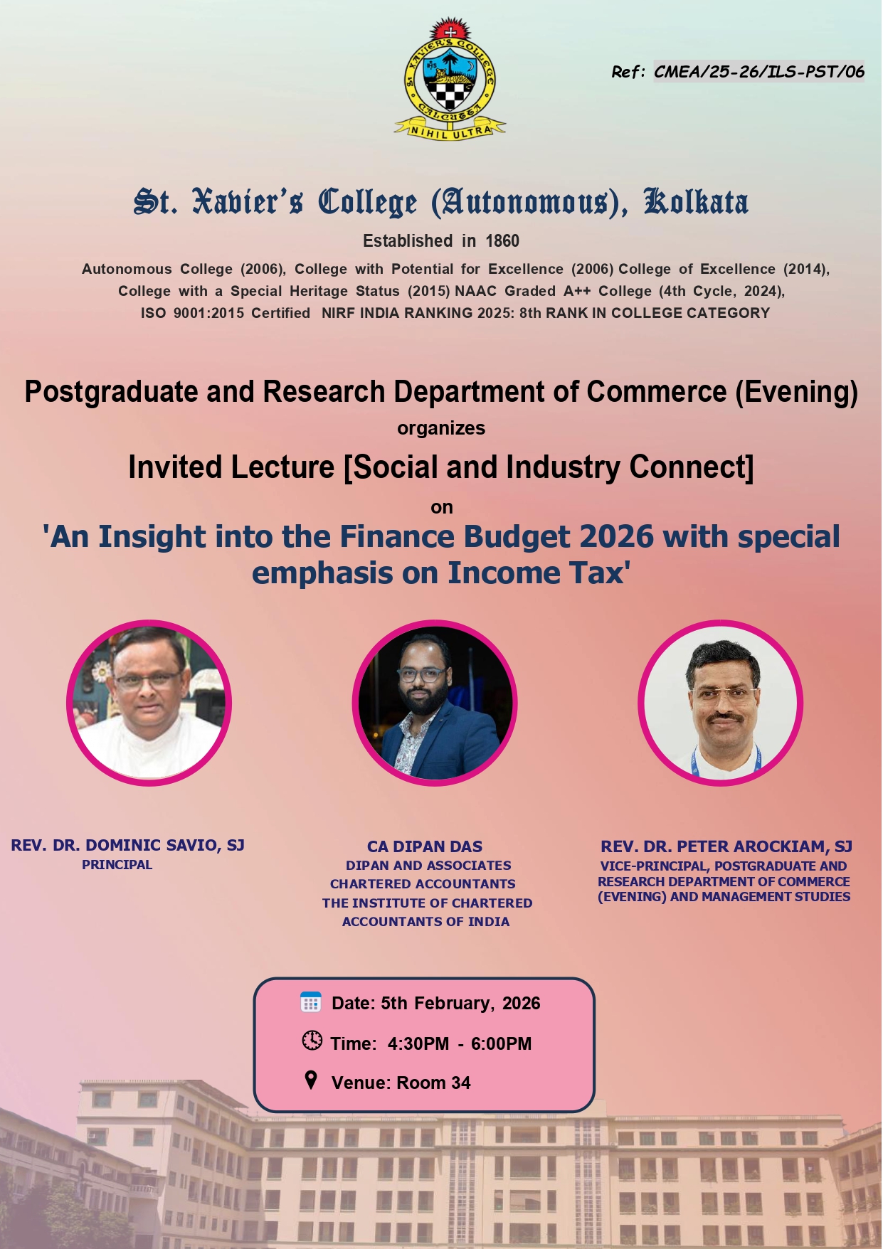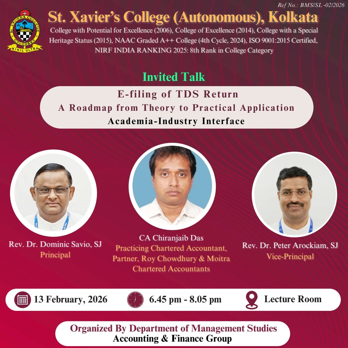 Applications addressed to the Principal along with CV and a Demand Draft of Rs. 2000/- to be drawn in favour of “St. Xavier’s College” payable at Kolkata, to reach latest by 14.03.2026.