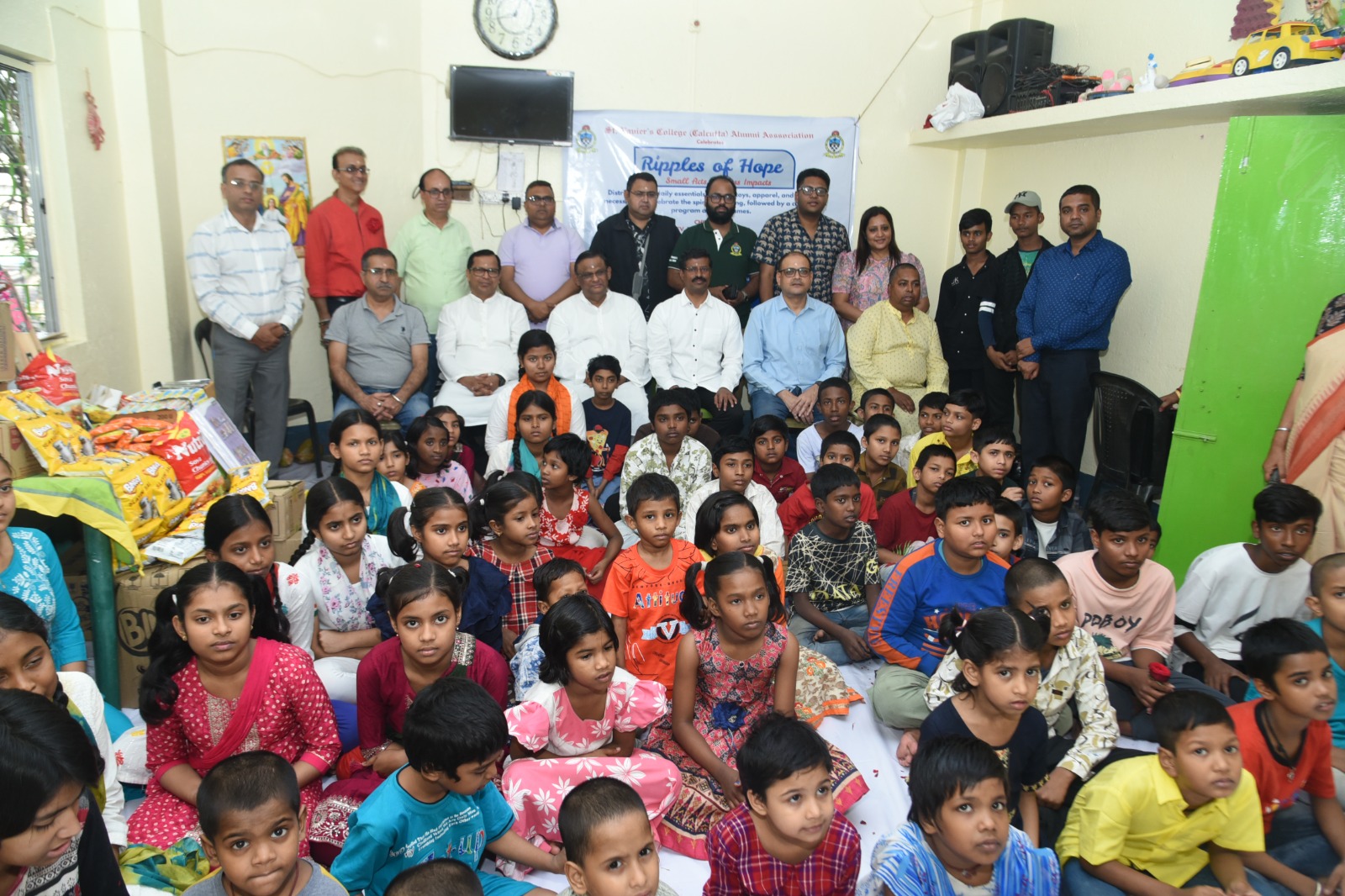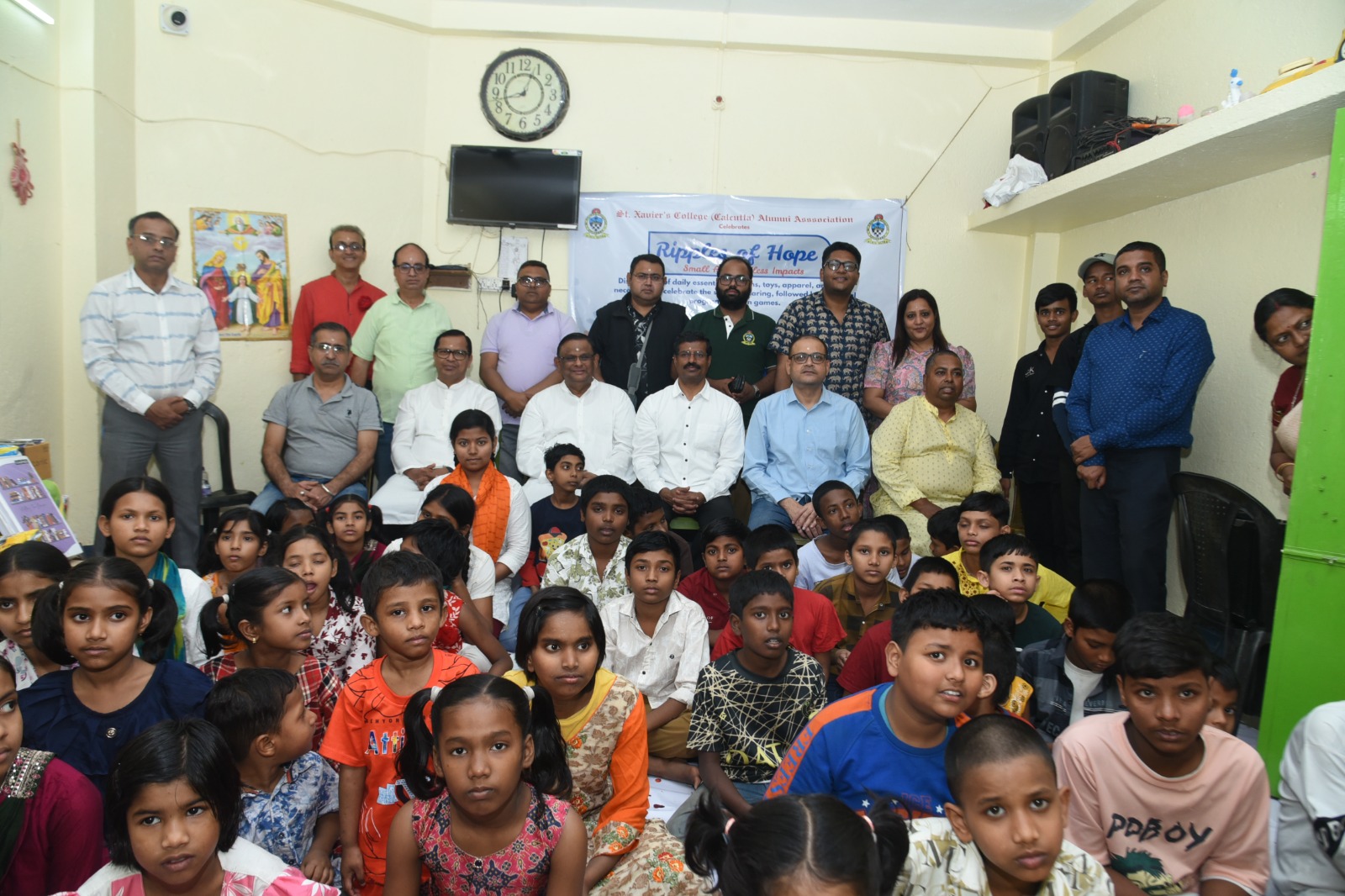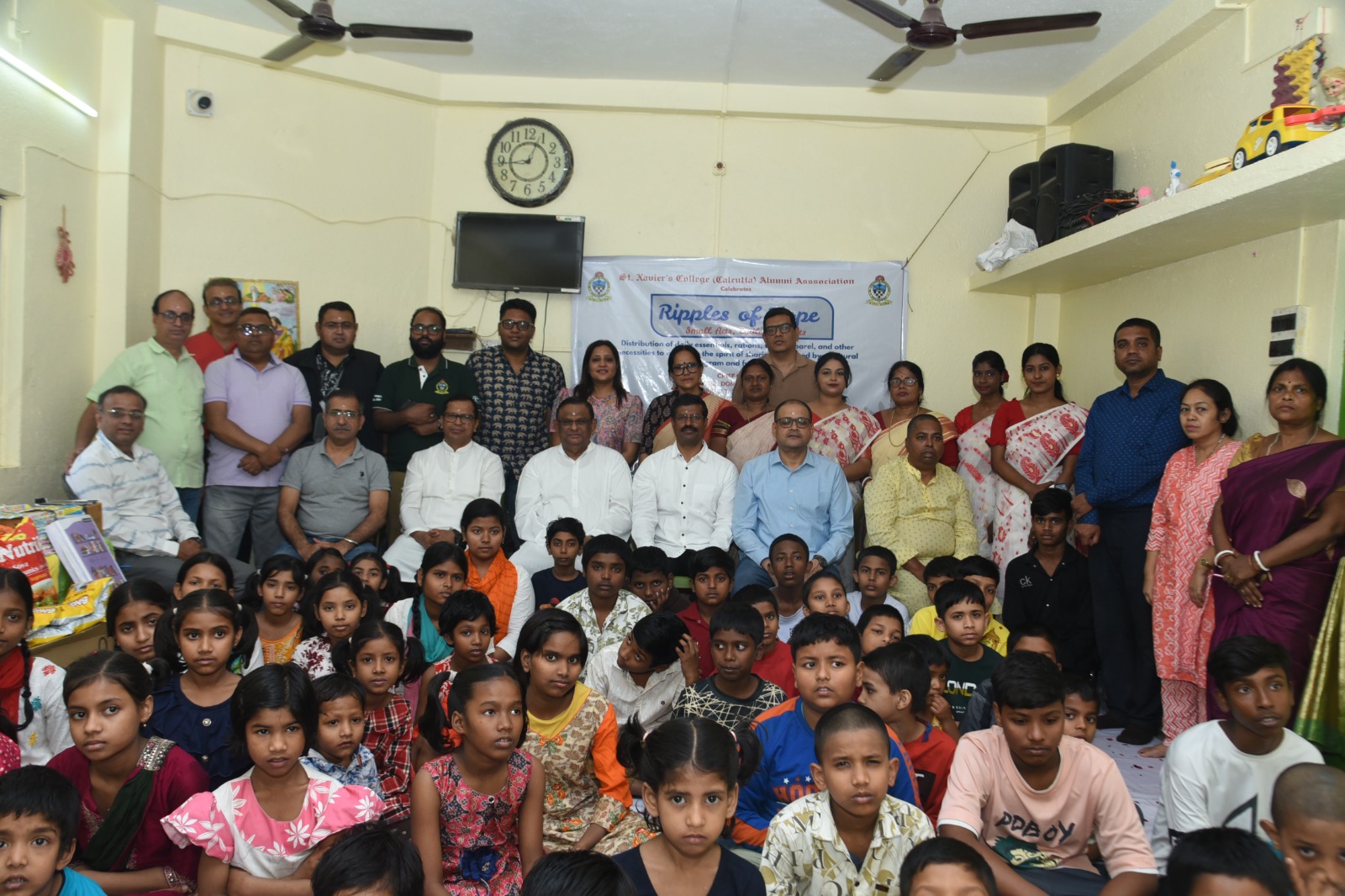 The St. Xavier’s College (Calcutta) Alumni Association (SXCCAA) inaugurated its monthly philanthropic initiative “RIPPLES OF HOPE – Small Acts, Endless Impacts” on 12th November 2025 at Apanjan/Anandaghor, Gobindapur, Kolkata, in celebration of Children’s Day.