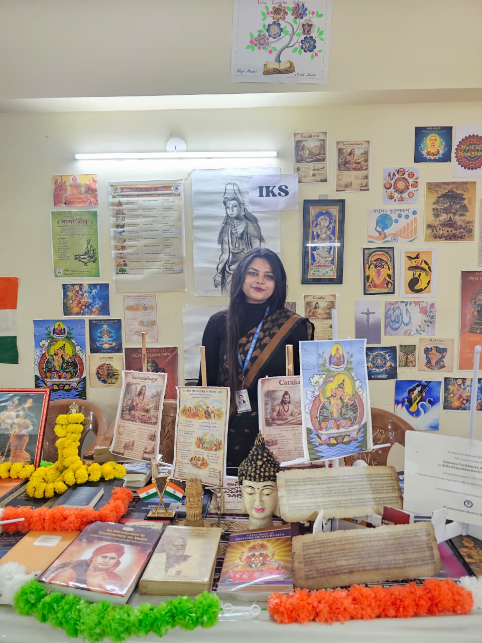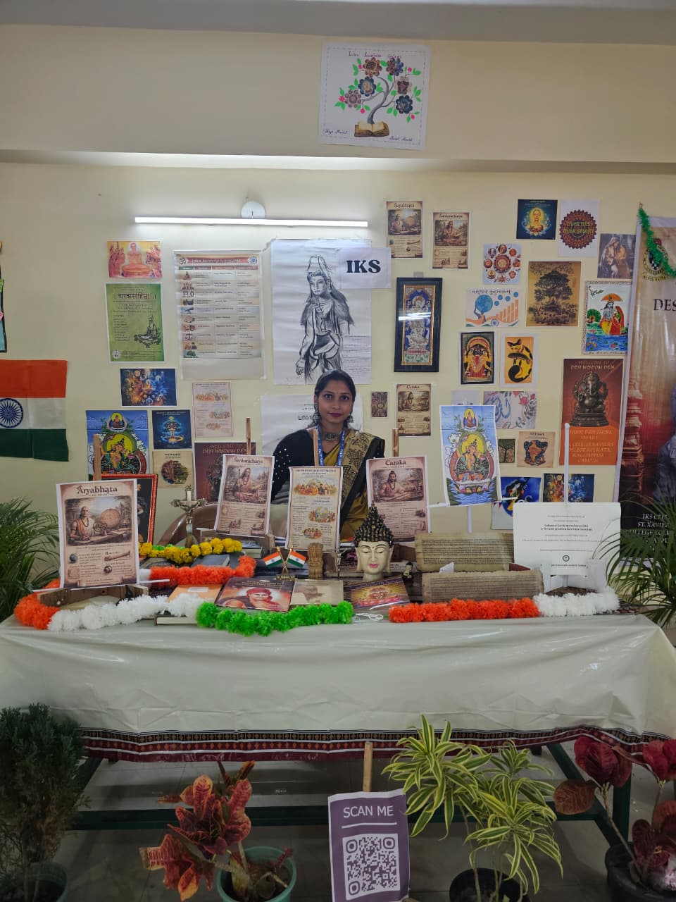 The Indian Knowledge Systems Cell, Raghabpur Campus, under the guidance of Dr. Jhumpa Mukherjee, Coordinator, IKS Cell, St. Xavier’s College (Autonomous), Kolkata, and Dr. Tinni Goswami, member, IKS Cell, organized a detailed exhibition on Understanding Indian Knowledge Systems: The Divine Wisdom through the Lenses of Scientific Humanism on 29th January, 2026, at the Raghabpur Campus on the occasion of the College carnival. The exhibition displayed a copy of the original handwritten manuscript folio of Caitanya Caritāmṛta Antya Līlā (1537 Saka, 1615 AD) by Śrīla Kṛṣṇadāsa Kavirāja Gosvāmī, which we collected from Bhakti Vedanta Research Centre, Kolkata. The stall also exhibited books in Sanskrit, English, and Bengali on IKS along with various charts, posters, paintings, and models themed on diverse aspects of ancient Indian wisdom based on astronomy or Jyotish, mathematics or Ganit, grammar or Vyākaraṇa, Hindu medical science or Ᾱyurveda, philosophy or Darshana, and religion or Sanatana. Students and the visitors showed immense interest in understanding IKS and participated in the quiz to a great extent. Rev. Dr. Dominic Savio, SJ, Principal of St. Xavier’s College (Autonomous), Kolkata, along with Rev. Fr. Johnson Padiyara, SJ, Vice-Principal of the Raghabpur Campus, and distinguished members of the Alumni Association, provided encouragement and motivation to the students at the stall through their gracious presence. Students explained concepts such as वसुधैव कुटुम्बकम (Vasudhaiva Kutumbakam, meaning "the world is one family") and ऐक्यम् (Aikyam, meaning "unity" or "harmony") to visitors along with the texts and poster demonstrations. This explanation aimed to convey the essence of Indian Knowledge Systems, emphasizing that religious plurality is paramount. The display featured prominent religious texts, including the Holy Bible, the Holy Quran, and the Bhagavad Gita, to promote religious solidarity and facilitate interfaith dialogue.