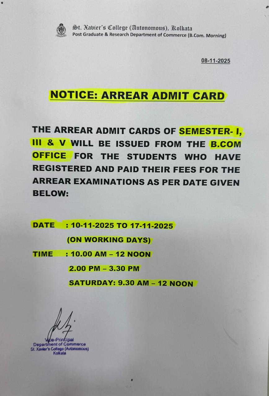 Date : 01.03.2025 : Notice for Students of Arts & Science Department